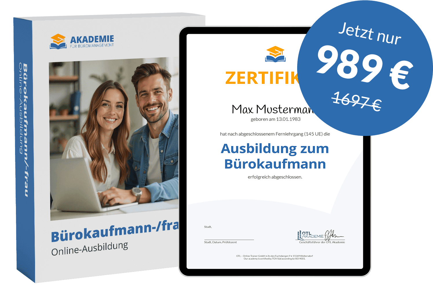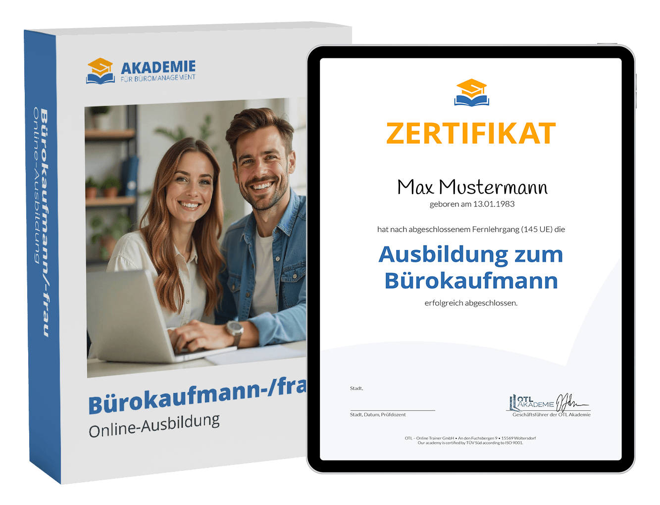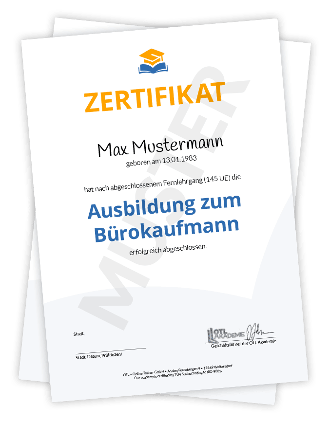 Mit dem IHK-Abschluss als Kaufmann für Büromanagement erhältst du ein Zertifikat auf DQR-Niveau 4, das dem Qualifikationsniveau eines Realschulabschlusses mit beruflicher Ausbildung entspricht und europaweit vergleichbar ist.